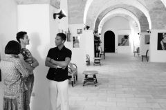 Alexandre Rodichevski si staglia contro l'opera di Capestro, Valentina. © Foto Antonio De Pascalis, Borgo Cardigliano di Specchia (Lecce), 2008 |